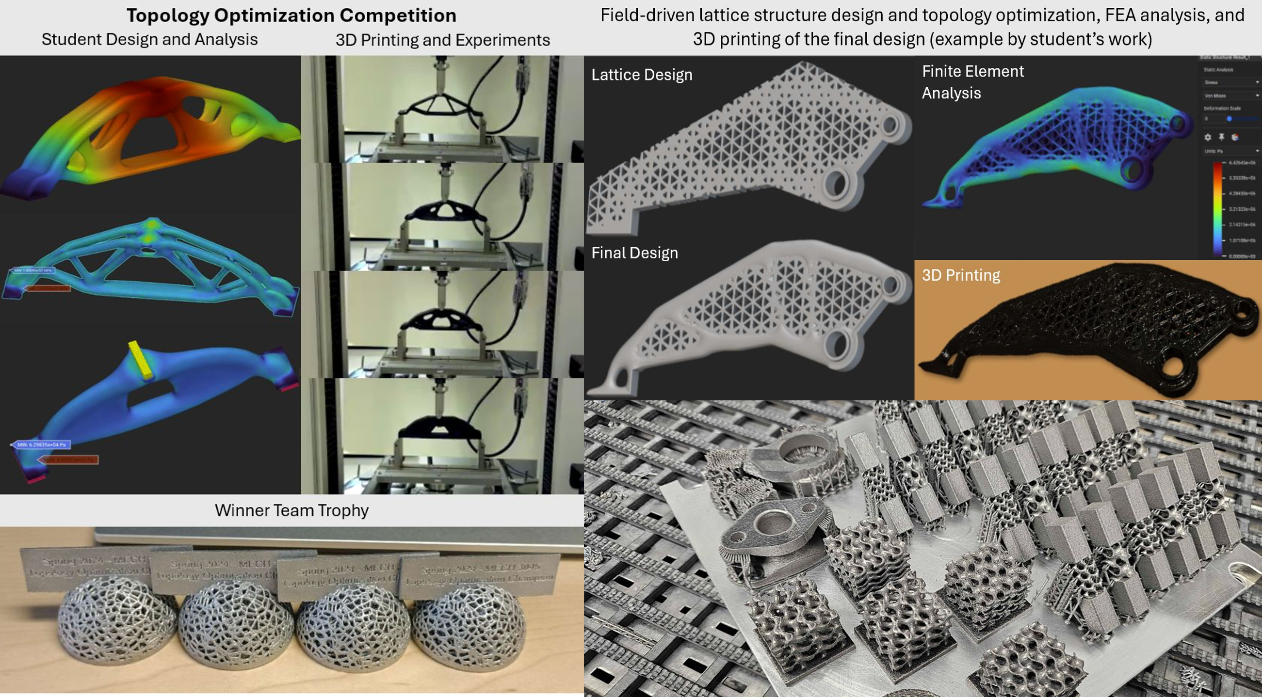 Field-driven design, lattice structure, and FEA analysis skills enable our students designing mechanical parts with excellent mechanical properties. Furthermore, they all loved the Metal Additive Manufacturing Workshop and got a chance to process the metal 3d printing.